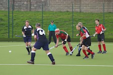 Brothers fires the ball towards goal at a penalty corner with Ben Johnson ready for a deflection …