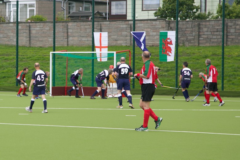 Caption: Loudon about to make a saving interception from Gangotra's cross with two Welsh players waiting to pounce