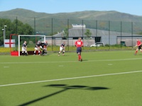 Frank Hardy of England turns Scots midfielder David Margerison inside out