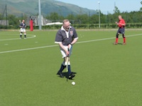 Full back Alan Strachan walks the ball forward