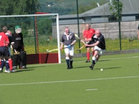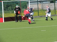 ... England have switched the ball and Ron Fraser sets up for the save, with Peter Ross ready to pounce for England