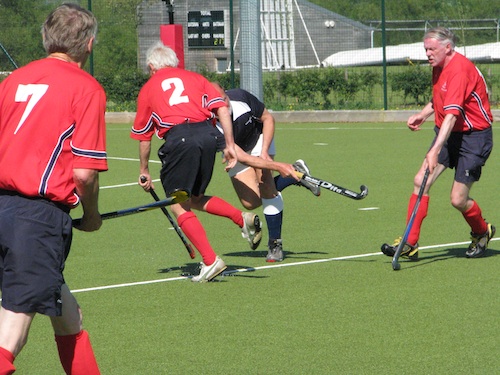 Caption: Keith Forster under heavy pressure clearing from his 22