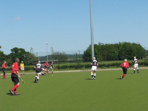 Caption: Keith Forster bringing the ball out of defence for Scotland