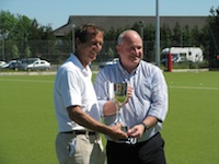 England GM Captain Stephen Stowell receiving Linburn Trophy from SHU Hon President Martin Boag