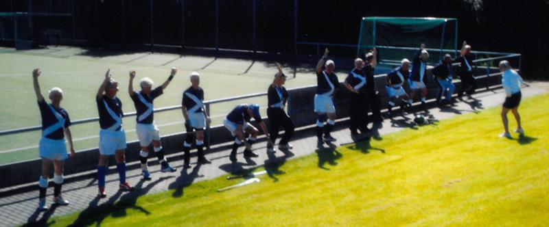 Scottish Thistles were joined by 3 Dutch ones to make up our numbers to 32 to form a scratch team with two extras for substituting. Neither circumstances nor time allowed any practice or training together to help us be prepared for our first game against a side from Alliance H.C. This Club comprises players of several nations who perhaps do not have enough compatriots to make up a national side or who simply prefer to play with friends from other countries. In any event they looked like they meant business having got together a week with several matches & practices under their belts. While not decrying this approach we are glad to report that it proved unsuccessful as Thistles ran out winners by the only goal of the match. Our next game was against Australia "Overlanders" and a 0 - 0 draw slightly favoured our opponents and gave us everything to go for against the Auld Enemy in our final group match. Thistles played very well but never looked like scoring & lost 3 - 0. However Thistles had done enough to be a clear second in the group. We next played another Australian team - the "Downunders" - the winners of their group - but lost 1 - 0 in a game we were never out of. Finally we were pitched against the host nation, Germany, for the Bronze medal & had a choice of relying on our superb defence to give us a chance at a penalty shoot out or go for a win in normal time. We decided on the latter but the final score of 3 - 0 in Germany's favour showed that, with hindsight, we should have tried the former!