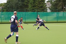 Brothers fires the ball towards goal at a penalty corner with Ben Johnson ready for a deflection …